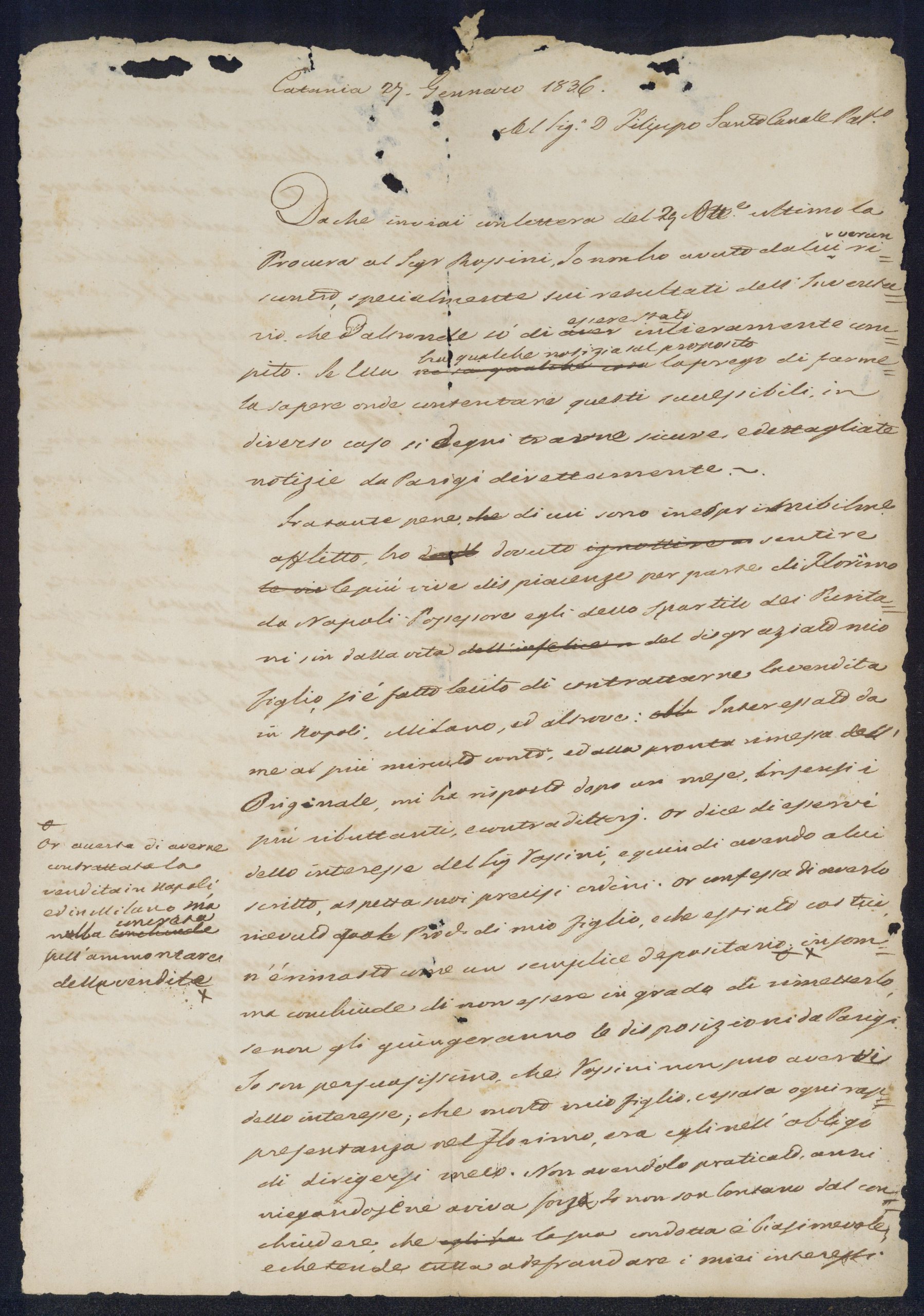 - Dati di redazione: Catania; Bozza di lettera;
