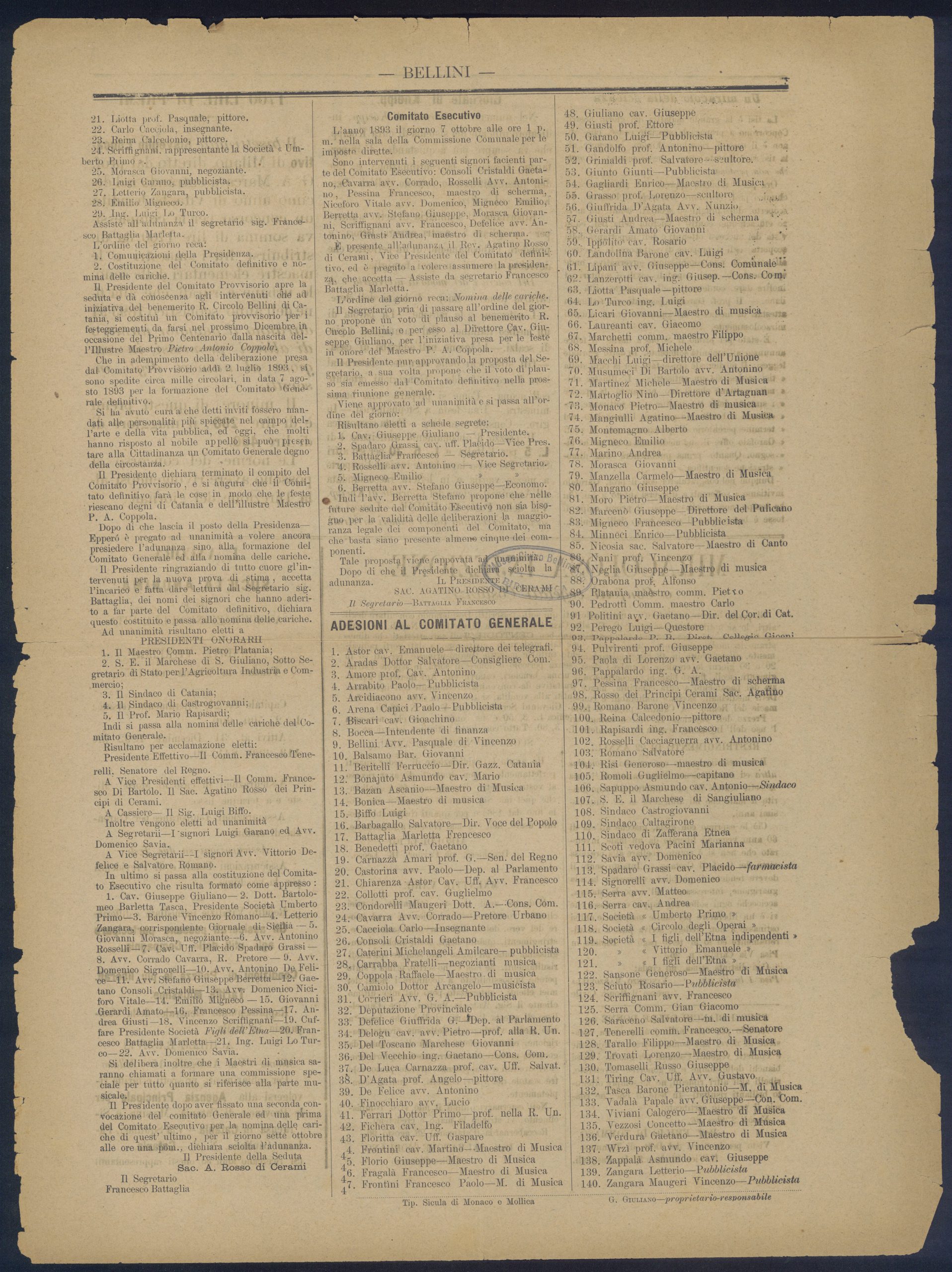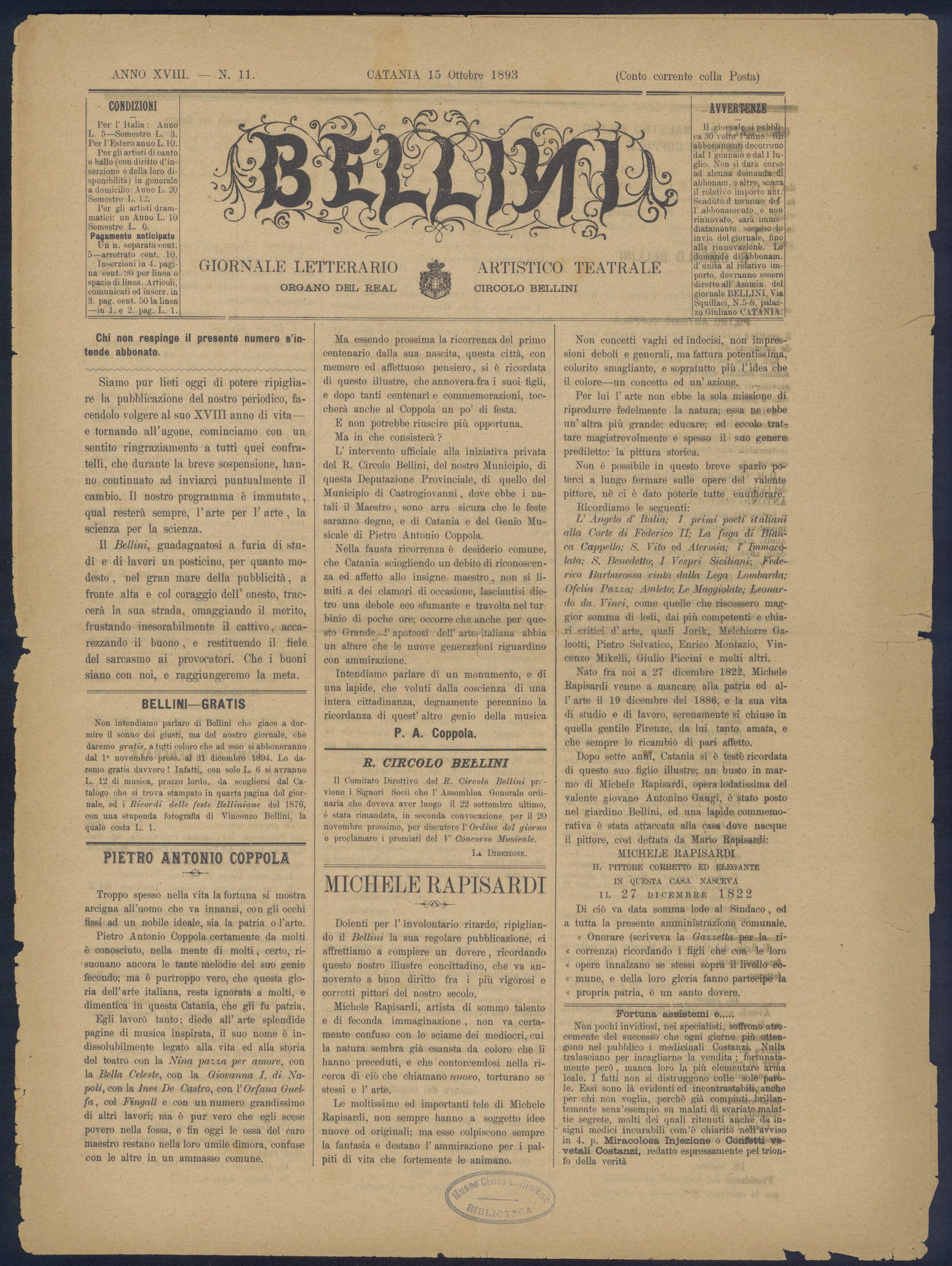 - Titolo: Bellini – Giornale letterario, artistico, teatrale