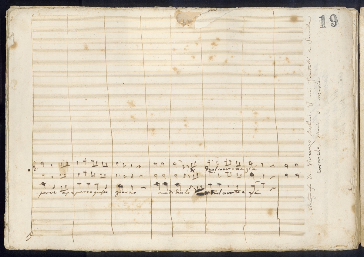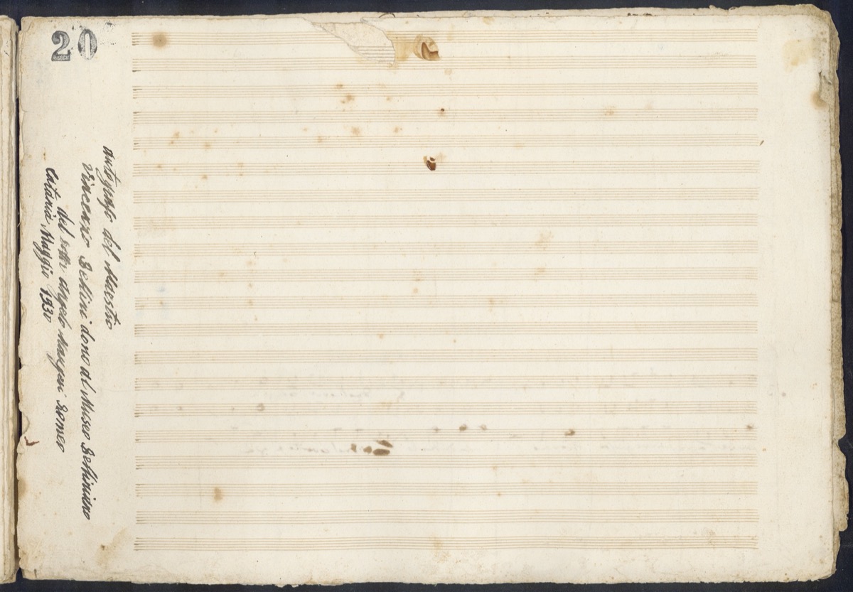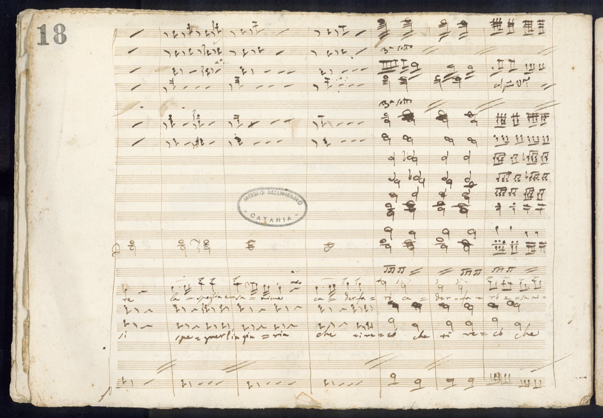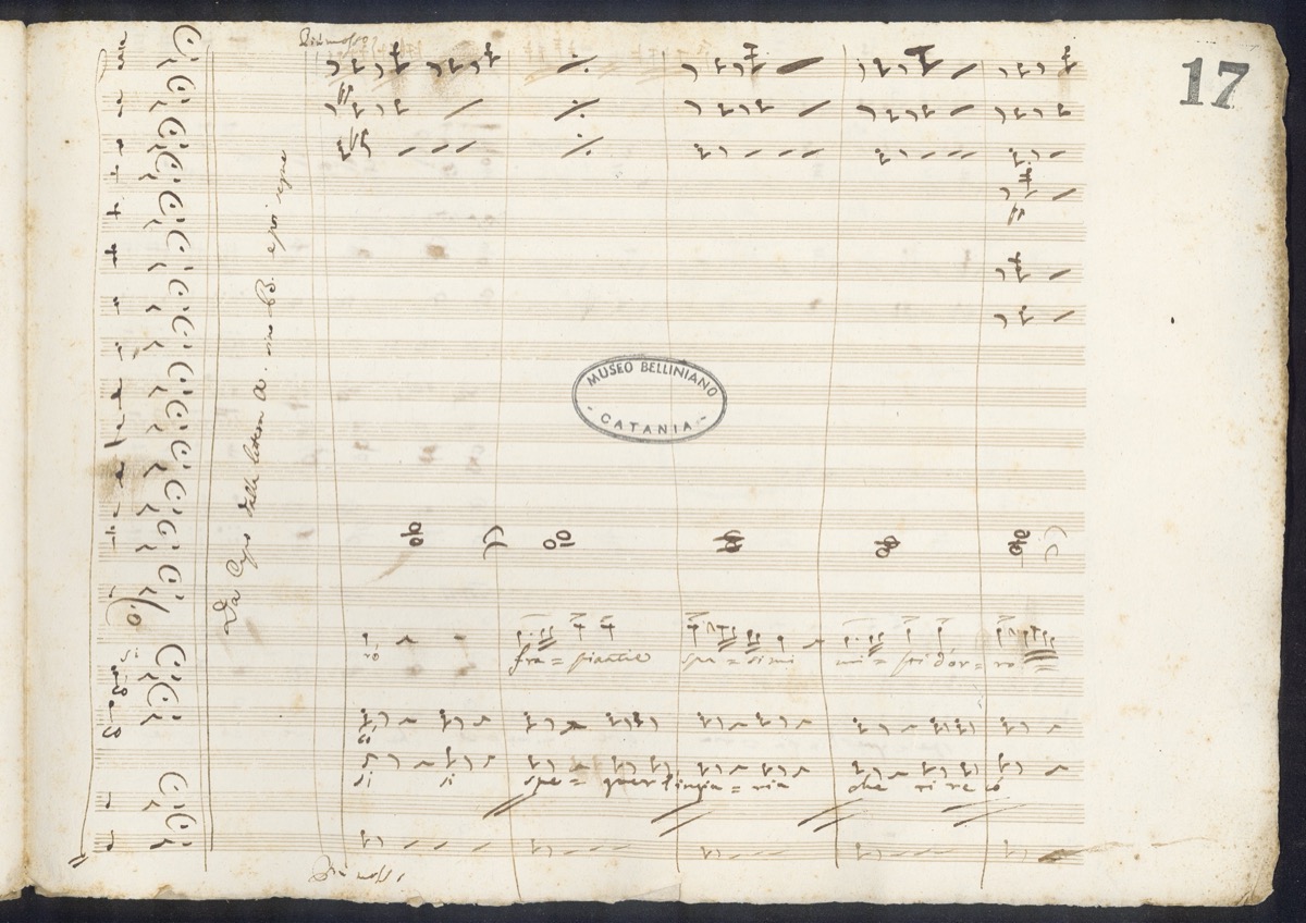 A c. 18 r, sul margine sinistro: «Autografo del Maestro | Vincenzo Bellini dono al Museo Belliniano | del dott.r Angelo Maugeri Romeo | Catania Maggio 1930». A c. 18 v, sul margine destro: «Autografo di Vincenzo Bellini. Isuoi Fratelli e Sorella | Carmelo, Mario e Maria».