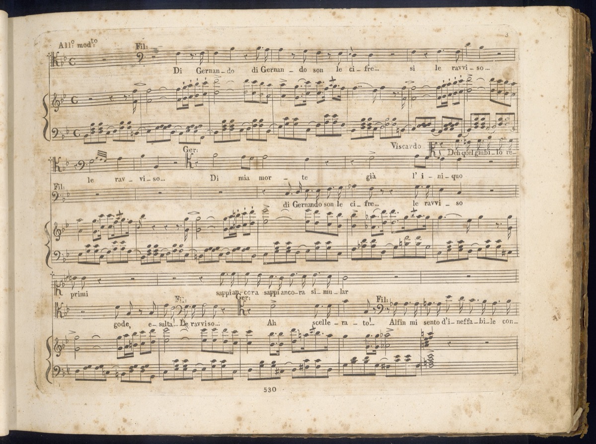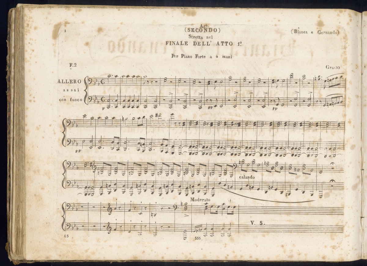 Bianca e Gernando : melodramma in due atti / musica del Sig.r M.o Vincenzo Bellini ; ridotto con accomp.to di piano forte dal Sig.r Francesco Florimo