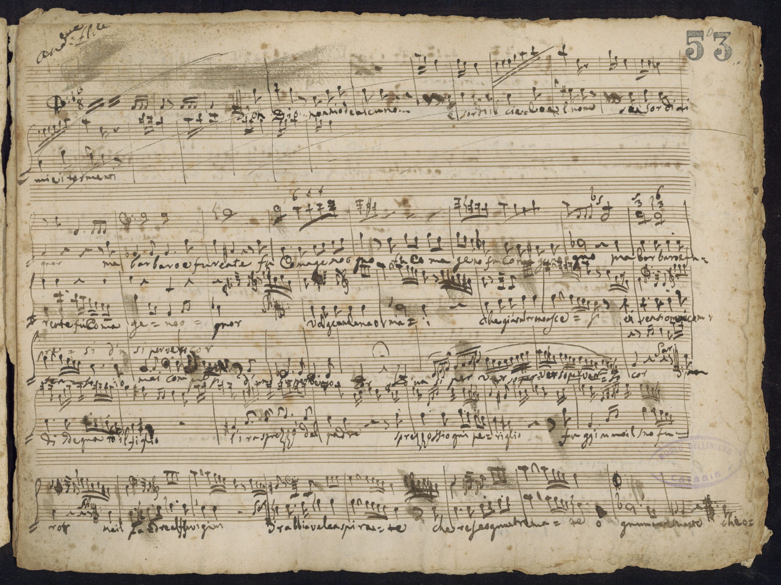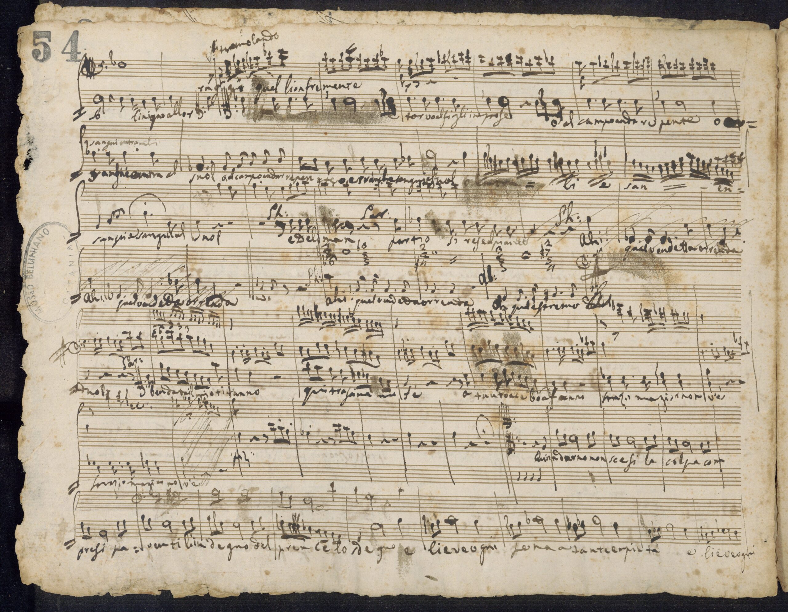 Manoscritto miscellaneo, comprende frammenti autografi di varie composizioni vocali.