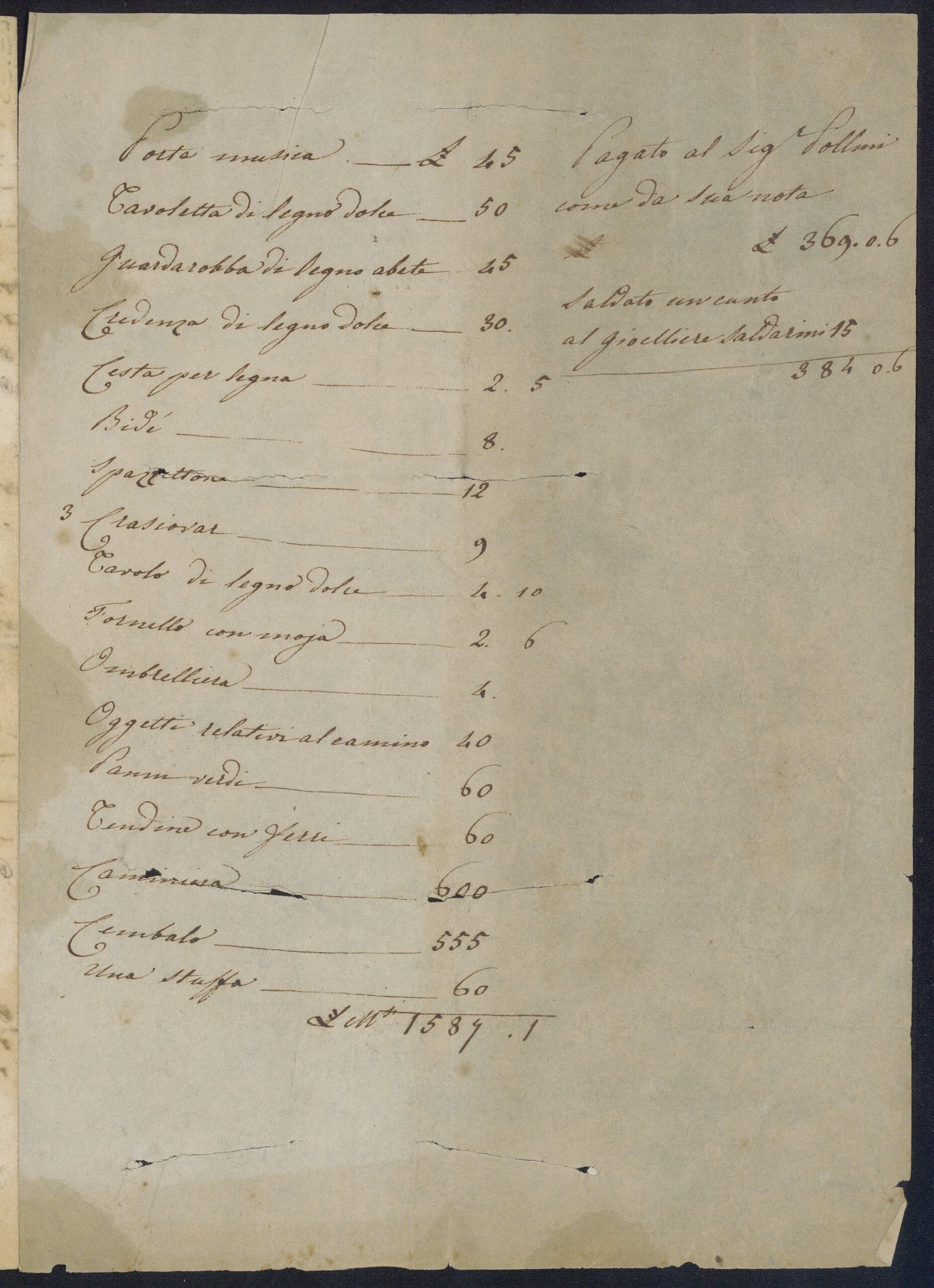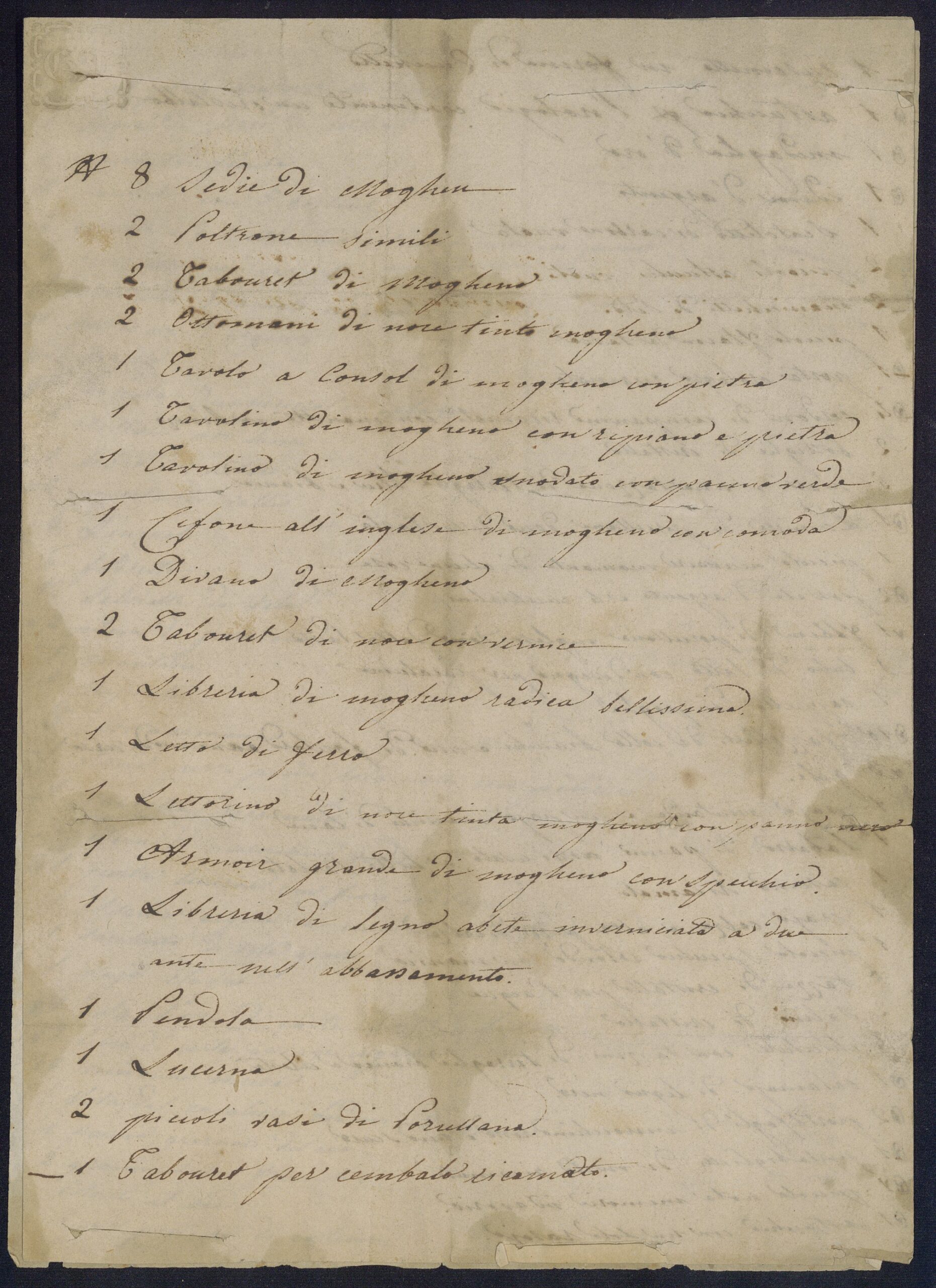 Inventario di arredi e suppellettili