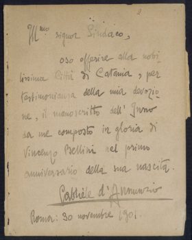 Lettera di Gabriele D’Annunzio al Sindaco di Catania