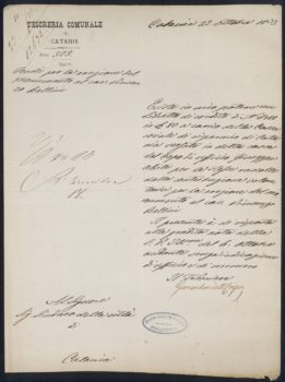 Tesoreria comunale di Catania – 1873-10-22