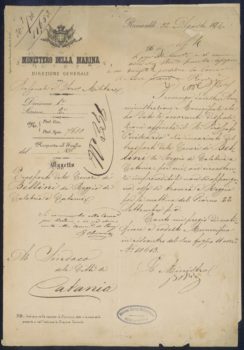 Lettera del Ministero della Marina al Sindaco di Catania